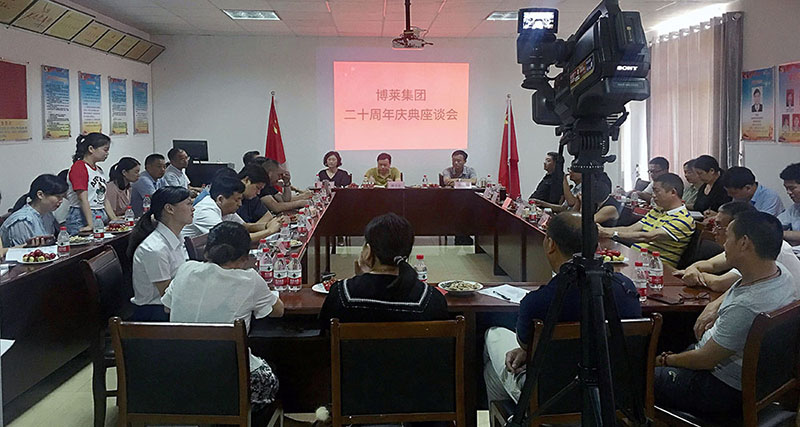 二十年风雨征程,二十年风霜如画,博莱集团在唐进波董事长的带领下,在全体博莱人的执着努力、顽强拼搏下,公司不断发展壮大,业绩斐然,铸就了今天的规模和成就,8月28日迎来了二十周年华诞。为了庆祝这一特殊的时刻,2019年8月28日上午,以“不忘初心,再创辉煌”为主题的博莱集团二十周年庆典座谈会,在江西博莱大药厂有限公司党员活动室隆重召开。集团公司领导、各单位经营班子成员、各单位骨干人员及优秀员工共计40余人代表着800多员工参加了会议。