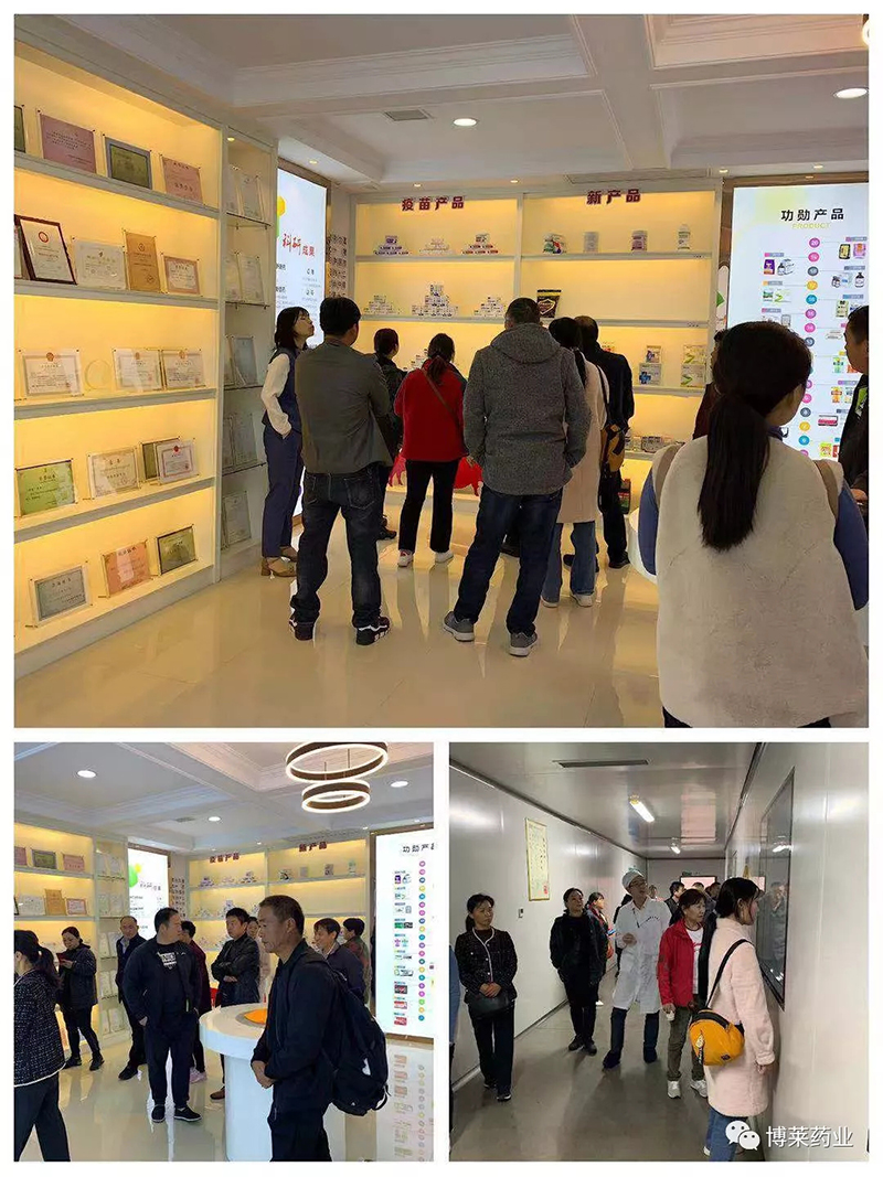 此次来访由营销中心负责主要接待工作,期间受到了集团副总裁熊总、技术部王老师、杨老师的热情接待。行程共同分为三个环节:了解集团规模、参观GMP车间、技术交流环节,技术部王老师对目前养殖行业的前景、复养等重要问题向大家进行认真的讲解和分析,也是因为有了博莱的技术支持,更让养殖老板们对养殖事业充满信心!