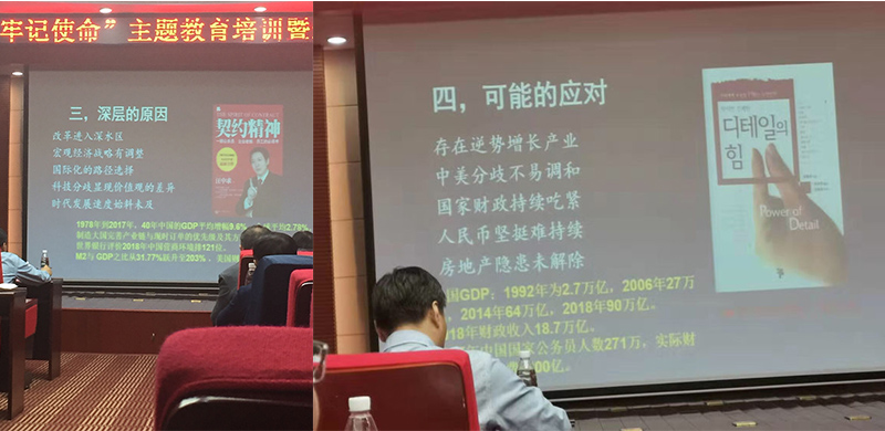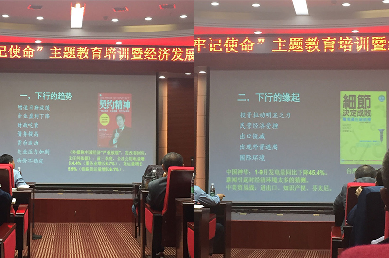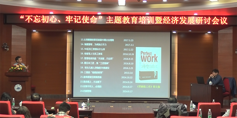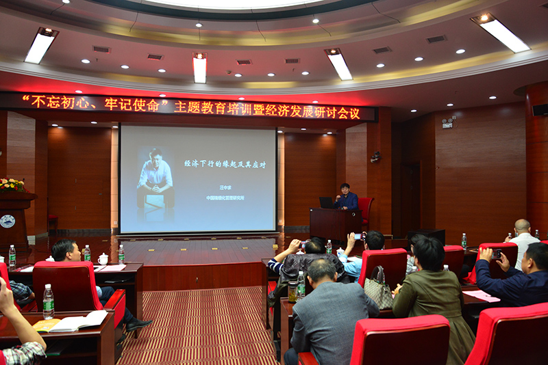 2019年10月31日下午,九江市农业产业化龙头企业协会会长唐进波先生特邀中国精细化管理研究所所长汪中求先生,在九江学院逸夫图书馆报告厅,以“经济下行的缘起及其应对”为题,为到场的百余位协会会员授课。