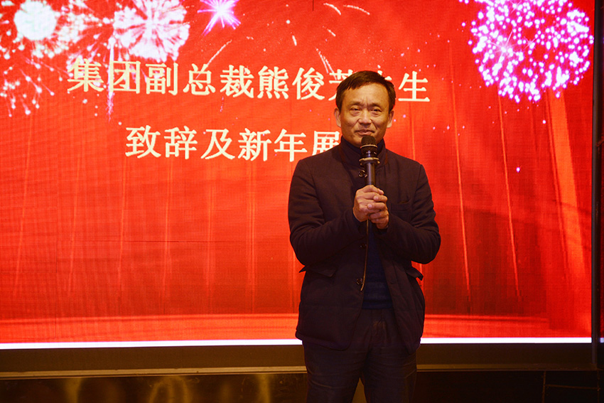 博莱集团副总裁熊俊芳对为博莱集团辛苦付出了一年的博莱家人们表示诚挚的感谢。他总结到,2019年药厂生产基地新水针车间顺利通过了GMP验收;博莱大药厂有限公司与九江学院校企合作,成立了博正生物科技产业研究院;博莱食品产业示范园项目启动;博莱大厦项目启动。他表示,当今市场变化很快,2020年是集团品牌战略实施的重要一年,他希望博莱的家人们能够稳抓实干、大胆创新,共同推动博莱品牌战略的实施。