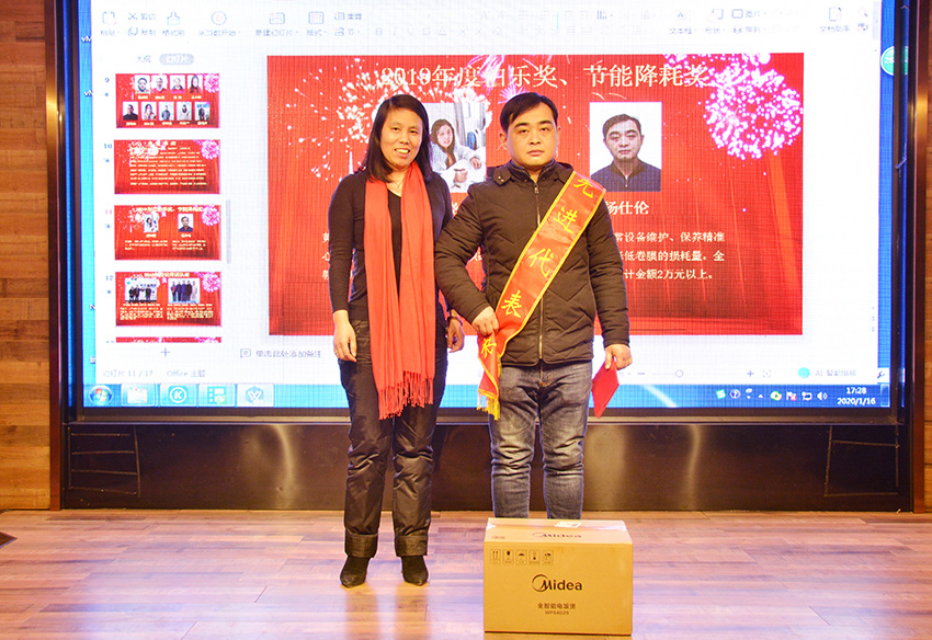在2019年度优秀团队和先进个人表彰环节中,颁发了模范家属奖、新人奖、金牛奖、伯乐奖/节能降耗奖、优秀团队奖共计6个奖项,熊总和肖总等领导为获奖人员颁发了证书和奖品。公司的财富就是员工,员工的凝聚力决定了公司的核心竞争力,而这群努力、优秀、有担当的员工,正是博莱药业实现快速发展的根本动力。