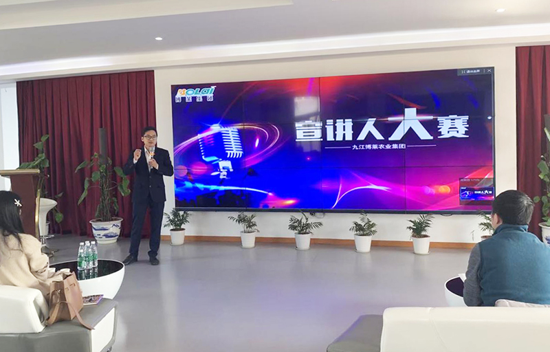 11月28日,博莱集团首届“宣讲人大赛”决赛在九江学院博正研究院举行,博莱集团总裁兼董事长唐进波,常务副总裁熊俊芳、副总裁瞿秀利、江西博莱农业高科技股份有限公司总经理肖剡戟、江西博莱大药厂副总经理肖欣戈、博美莱生物制品有限公司执行总经理汪云、博莱食品深加工事业部总经理龚代华等集团领导及员工代表,共40余人参加了活动。