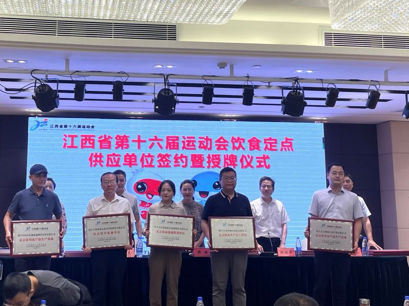 7月26日上午,江西省第十六届运动会饮食定点供应单位暨授牌仪式在风光秀丽的八里湖边的悦兮湖大酒店举行。
