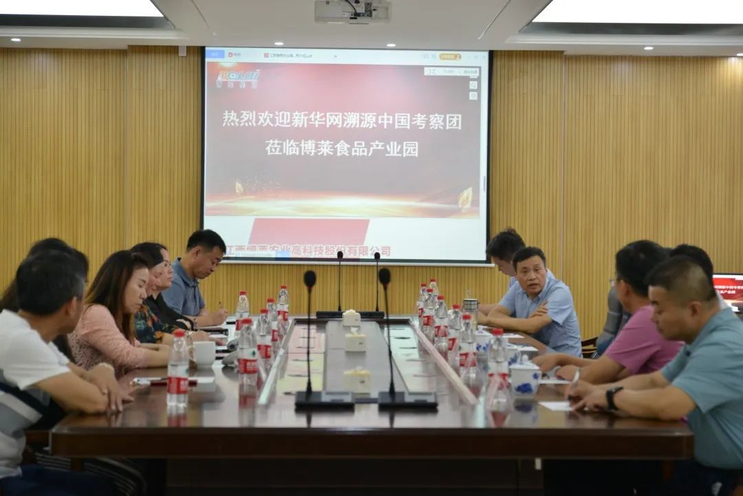 新华网溯源中国数字经济总平台执行主任孙芝燕一行先后考察食品深加工生产车间、园区服务中心、文化馆等地,集团董事长唐进波详细地介绍了博莱食品产业园的发展状况和企业生产情况。