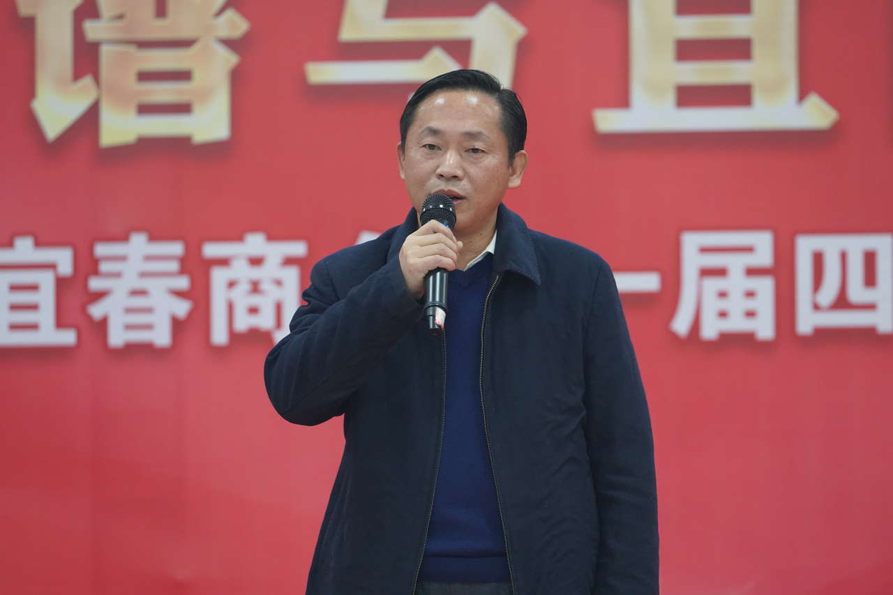 市政协副主席、市工商联主席、市总商会会长陈世勇代表九江市工商联、九江市总商会向大会胜利召开表示热烈的祝贺。感谢宜春籍优秀企业家扎根九江,投资兴业,为第二故乡作出了巨大贡献。他勉励大家一要深入学习贯彻党的二十大精神,埋头苦干、担当作为,不断推进社会主义现代化建设。二要面向未来,心系九江;为九江高标准建设长江经济带重要节点城市作出宜商应有贡献。三是努力谱写宜商发展新篇章。