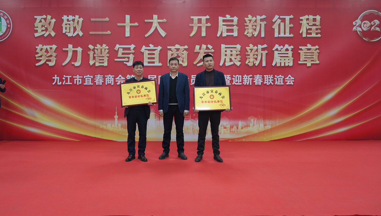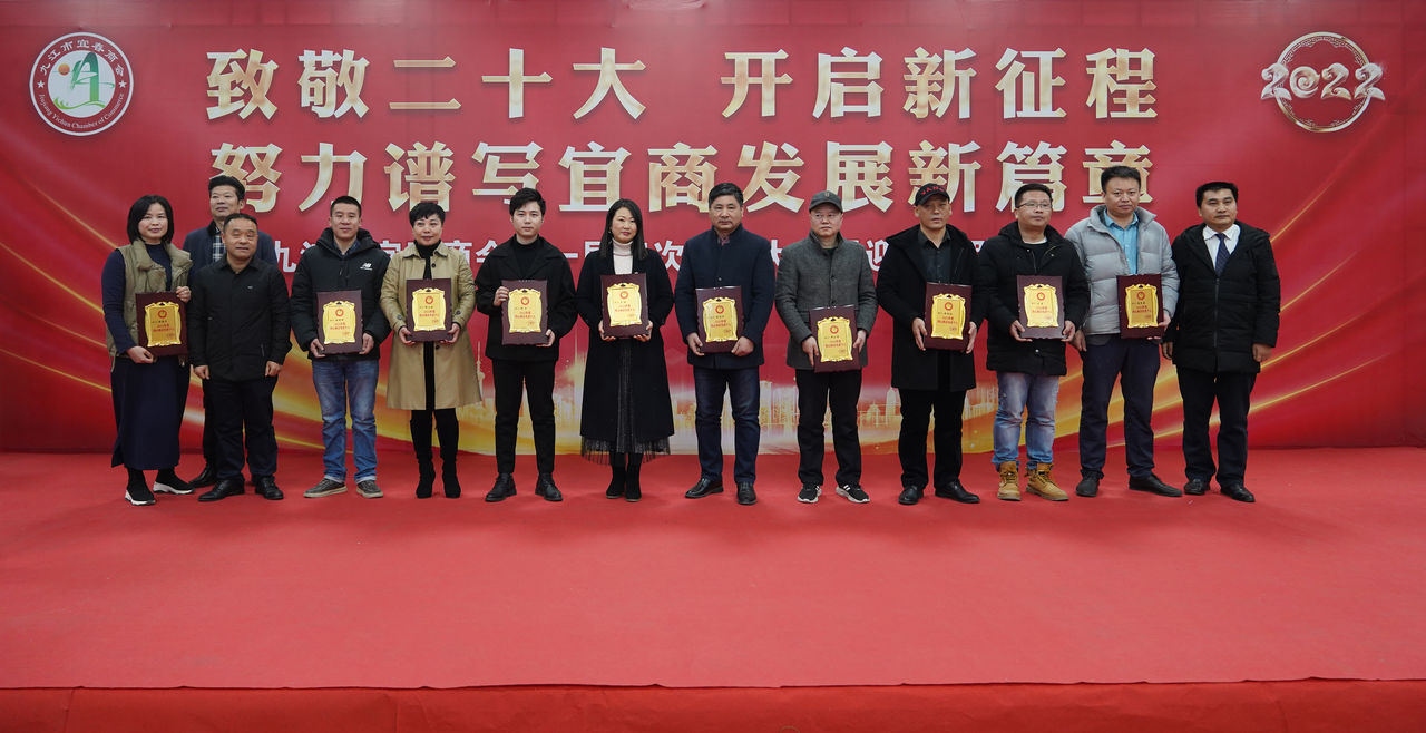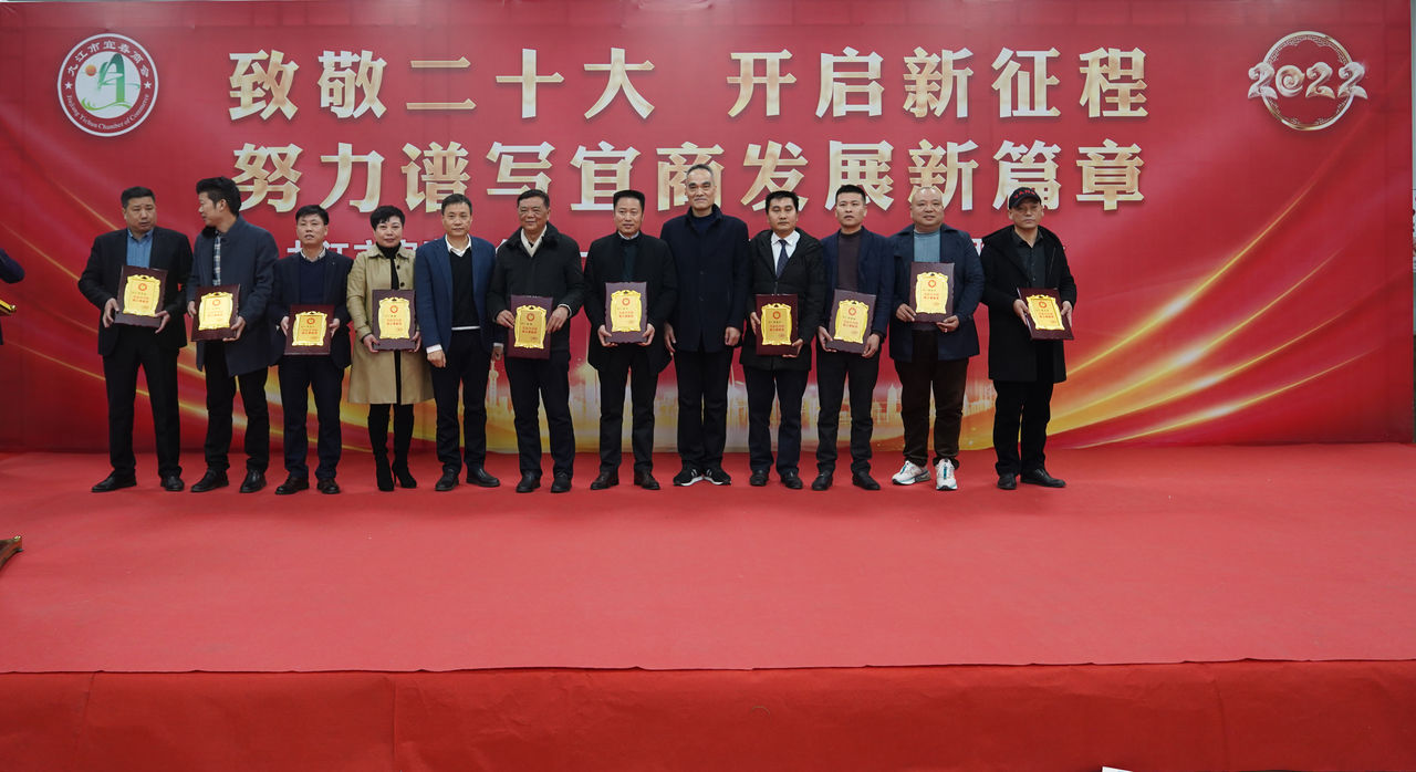 向2022年度先进会员单位和先进个人颁奖。一是颁发2022年度热心商会先进个人奖;二是颁发万企兴万村爱心奉献奖;三是颁发2022年度优秀会员单位奖;四是颁发2022年度突出贡献奖;五是颁发宜商领航者奖。