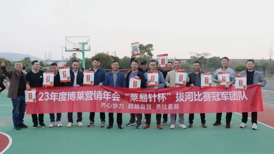 随后市场精英移步到博莱食品产业园,游园参观了解食品产业园的发展盛况,并举行了“莱易针”杯拔河比赛,年会晚宴在博莱食品园举行。