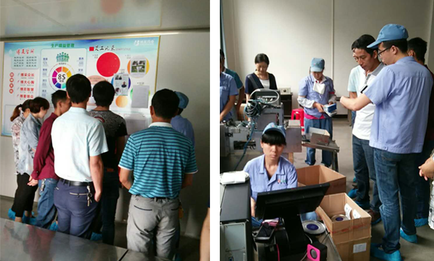参观人员对散剂、水针、粉针、仓库、灭活苗车间、实验室等进行实地学习和交流。在各车间、仓库管理看板前,参观人员驻足停留,与班组长热情交流并分享内容新颖性和管理性。在水针包装组,参观人员对有条不紊、紧凑的工作节奏表示极大兴趣,纷纷向班长请教经验和方法。