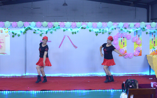 之后便是晚会的重头戏—节目表演。首先登台的大药厂员工沈梦和汪爱萍表演的《水兵舞》赢得掌声一片。